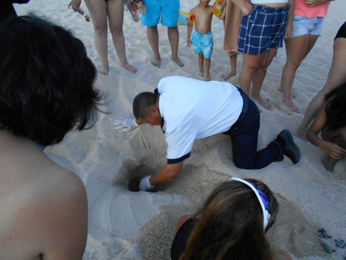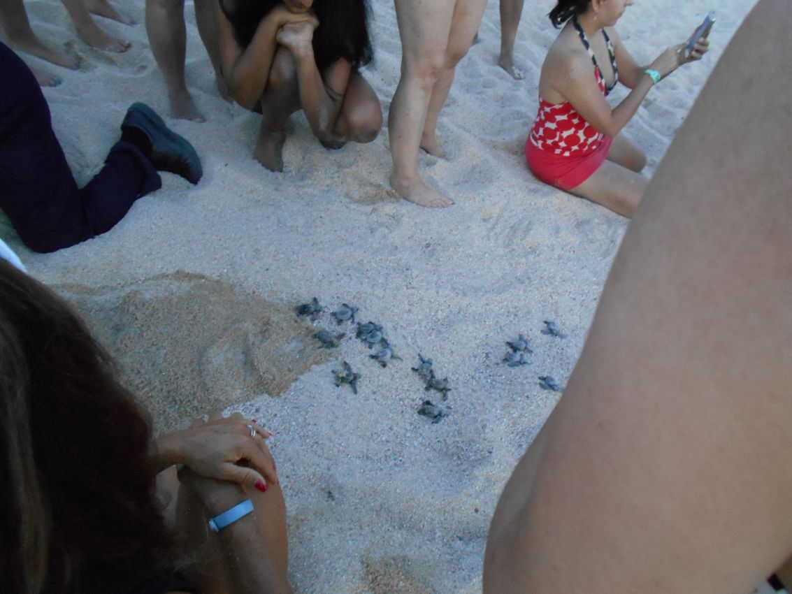 Unter großer Anteilnahme fangen sie sofort an Richtung Meer zu watscheln und so